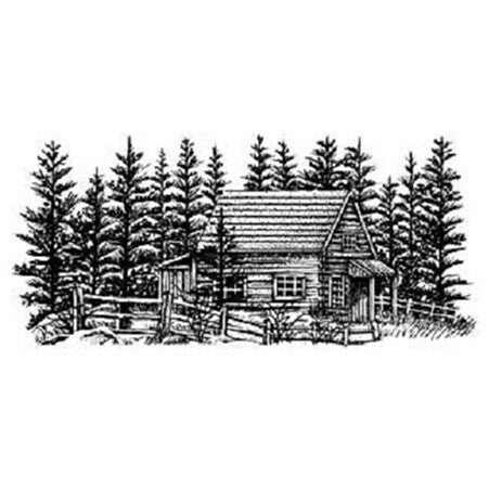Sweet Poppy: Stampscapes – Cabin with Fence – Polymer