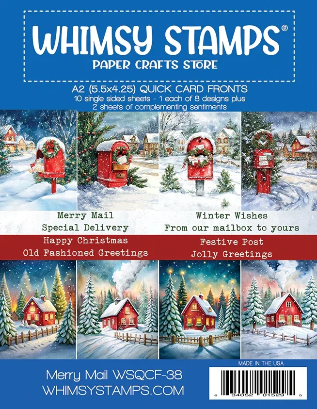 Whimsy Stamps Quick Card Fronts - "Merry Mail" eignen sich hervorragend zum Kartenbasteln, Journaling, Mixed Media, Scrapbooking und Papiersammeln. Diese Kartenfronten sind auf hochwertigem Karton gedruckt und werden mit Stolz in den USA hergestellt.